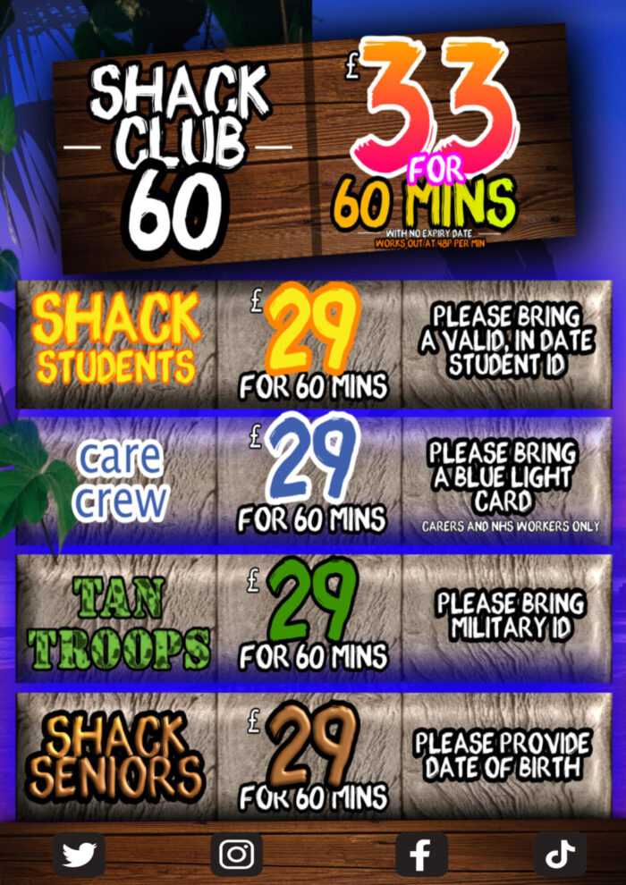 We’re a family and provide a great service, in no time you’ll be telling your friends about how great Tan Shack is… we promise!